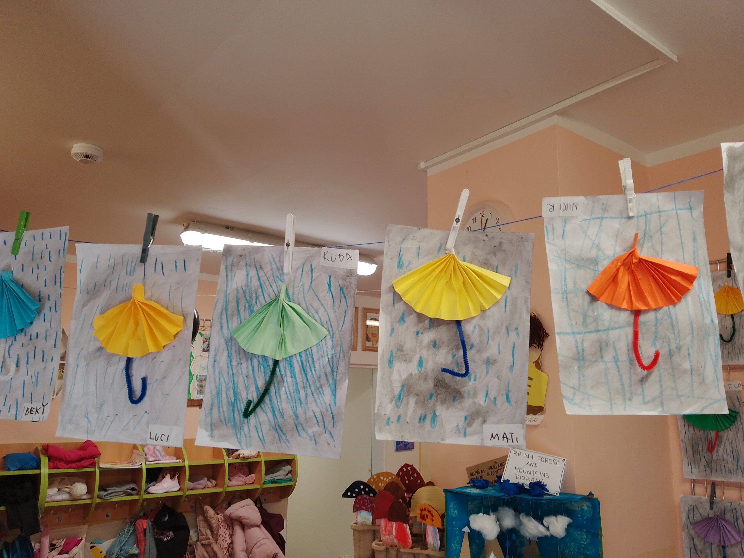 At the beginning of the week we talked about clothes and the connection with seasons and various types of weather. We also tried to say ‚My favourite weather is….‘ Then learnt about a thermometer and temperatures ( hot vs.cold ). Later on we made cute paper umbrellas as well. Besides that we played a weather run and catch game, listened to a song and watched our friends Steve and Maggie in a weather video : https://youtu.be/5_ShP3fiEhU?feature=shared, https://youtu.be/_xMMWHVbjGk?feature=shared