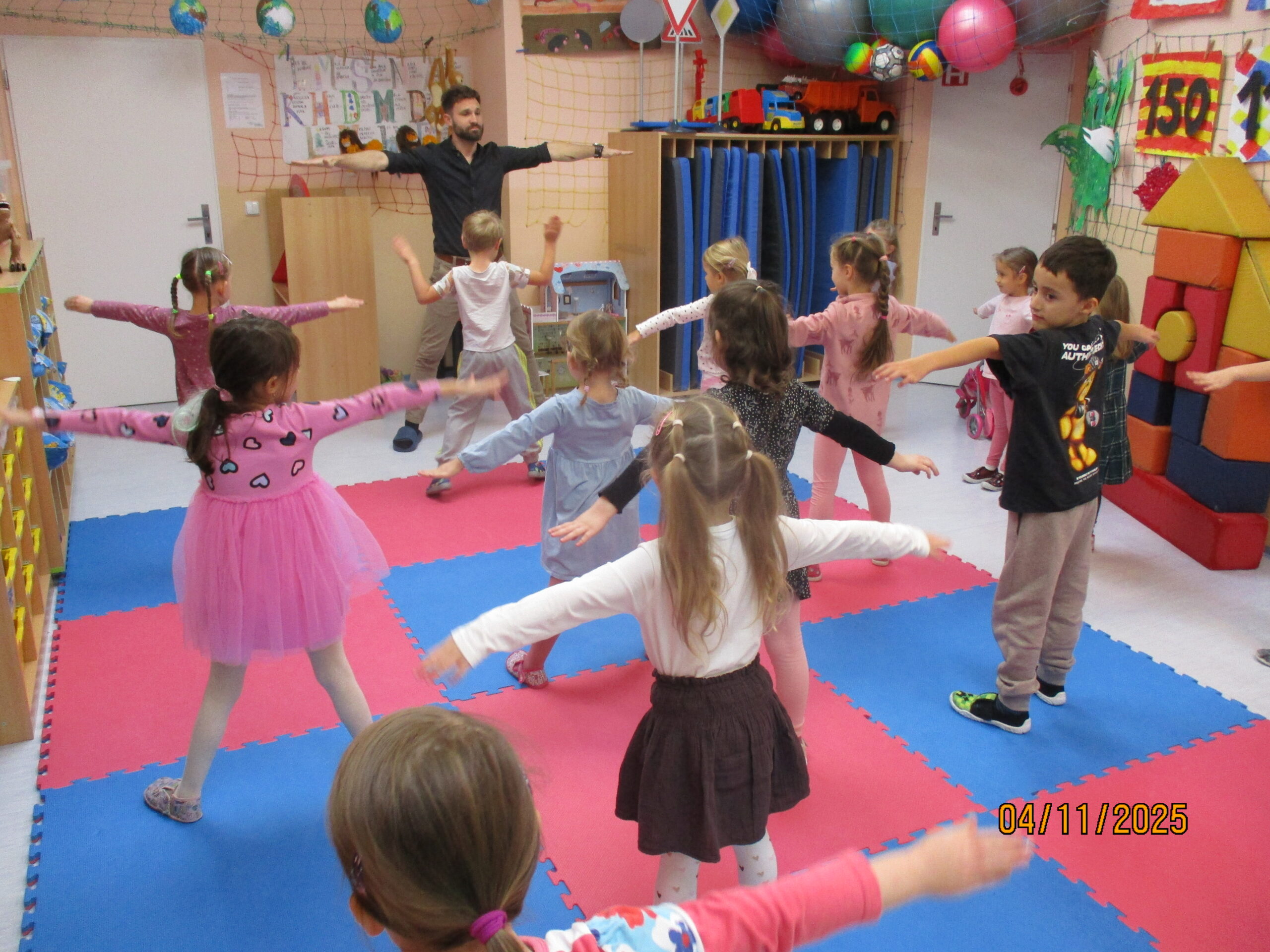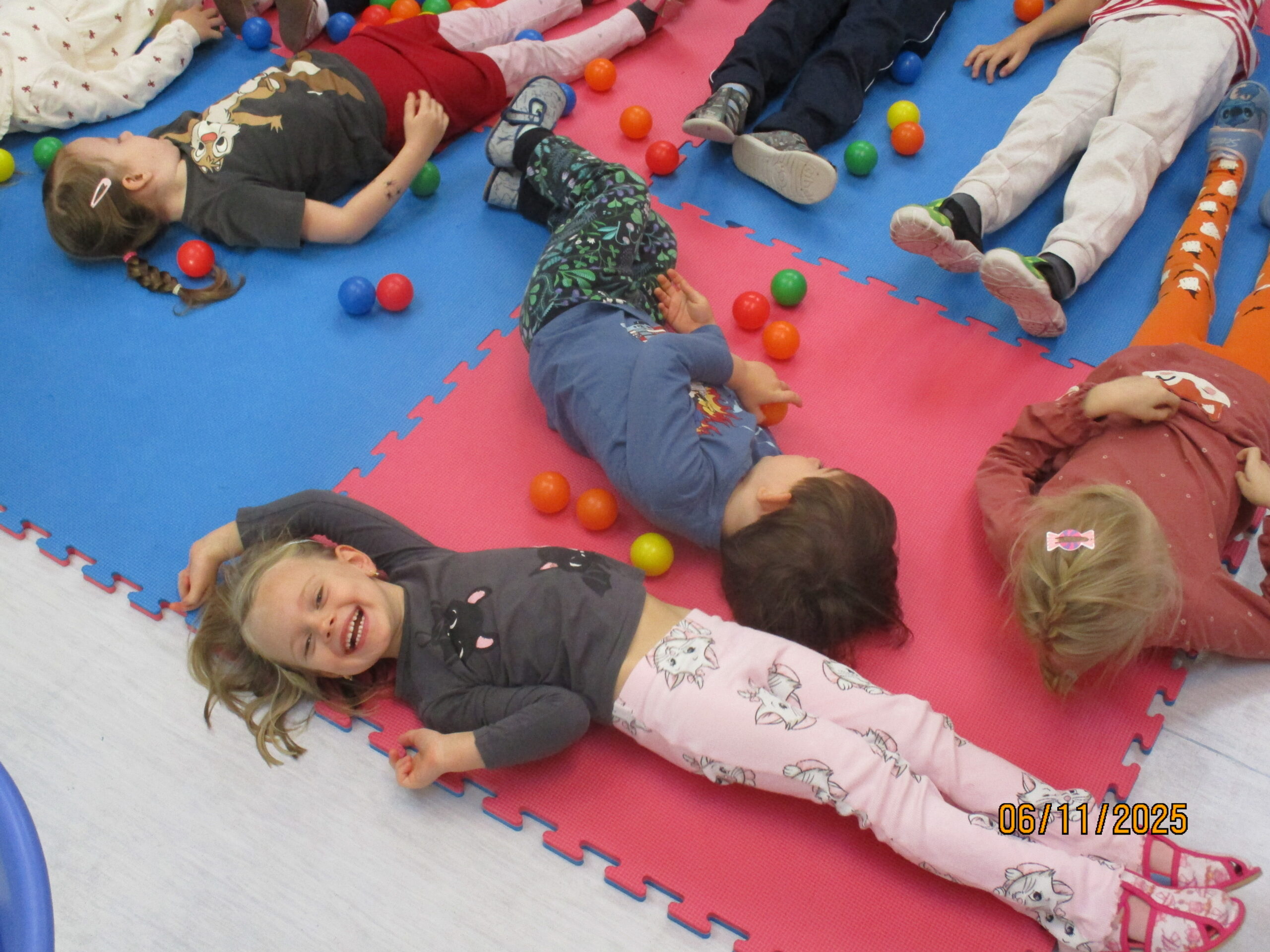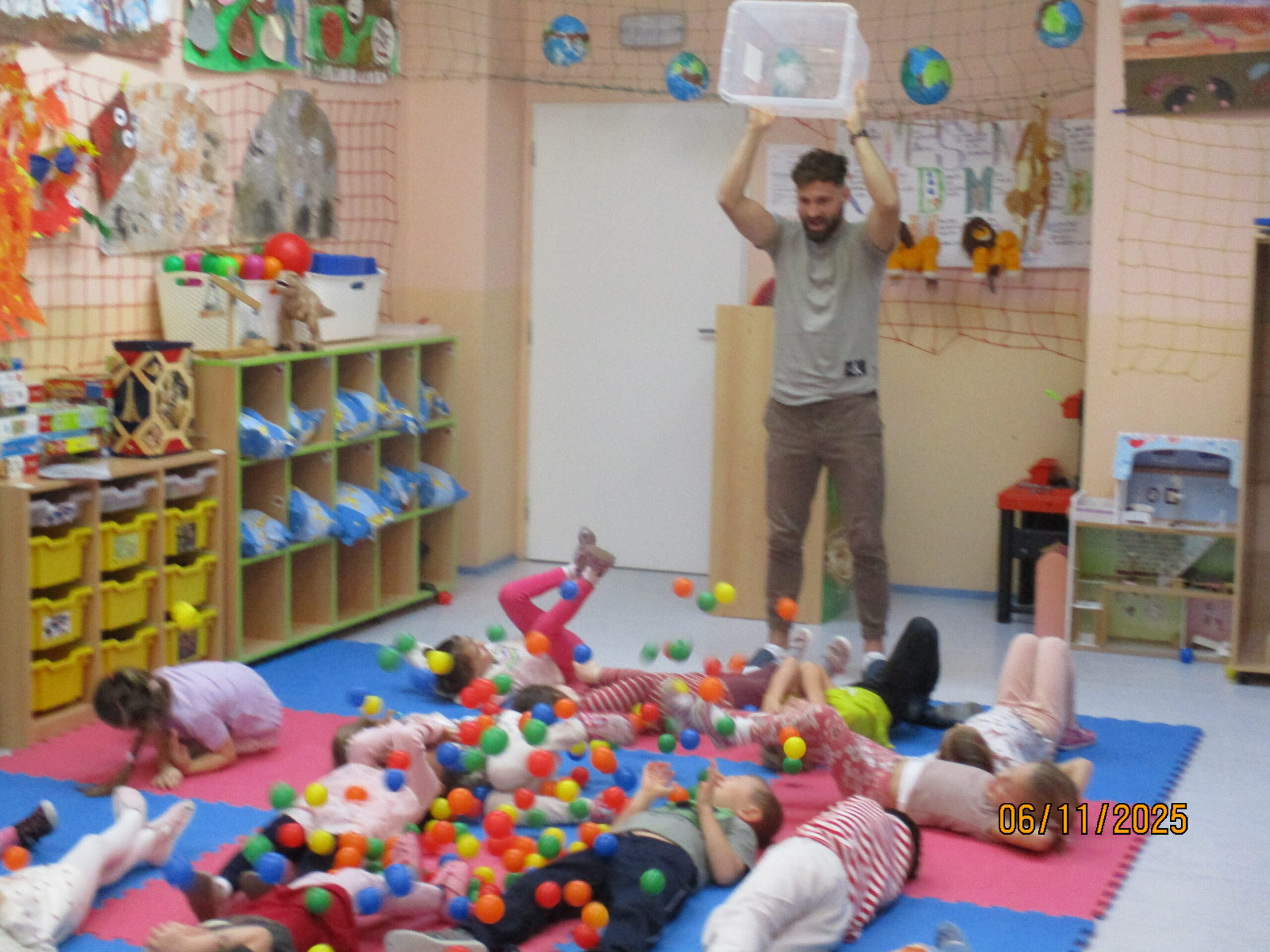 To connect with the „snowy“ weather concept, we had a high-energy „snowball fight“! The children practiced their aim and coordination by throwing our plastic balls (the „snowballs“) at a designated target, which was a huge hit.