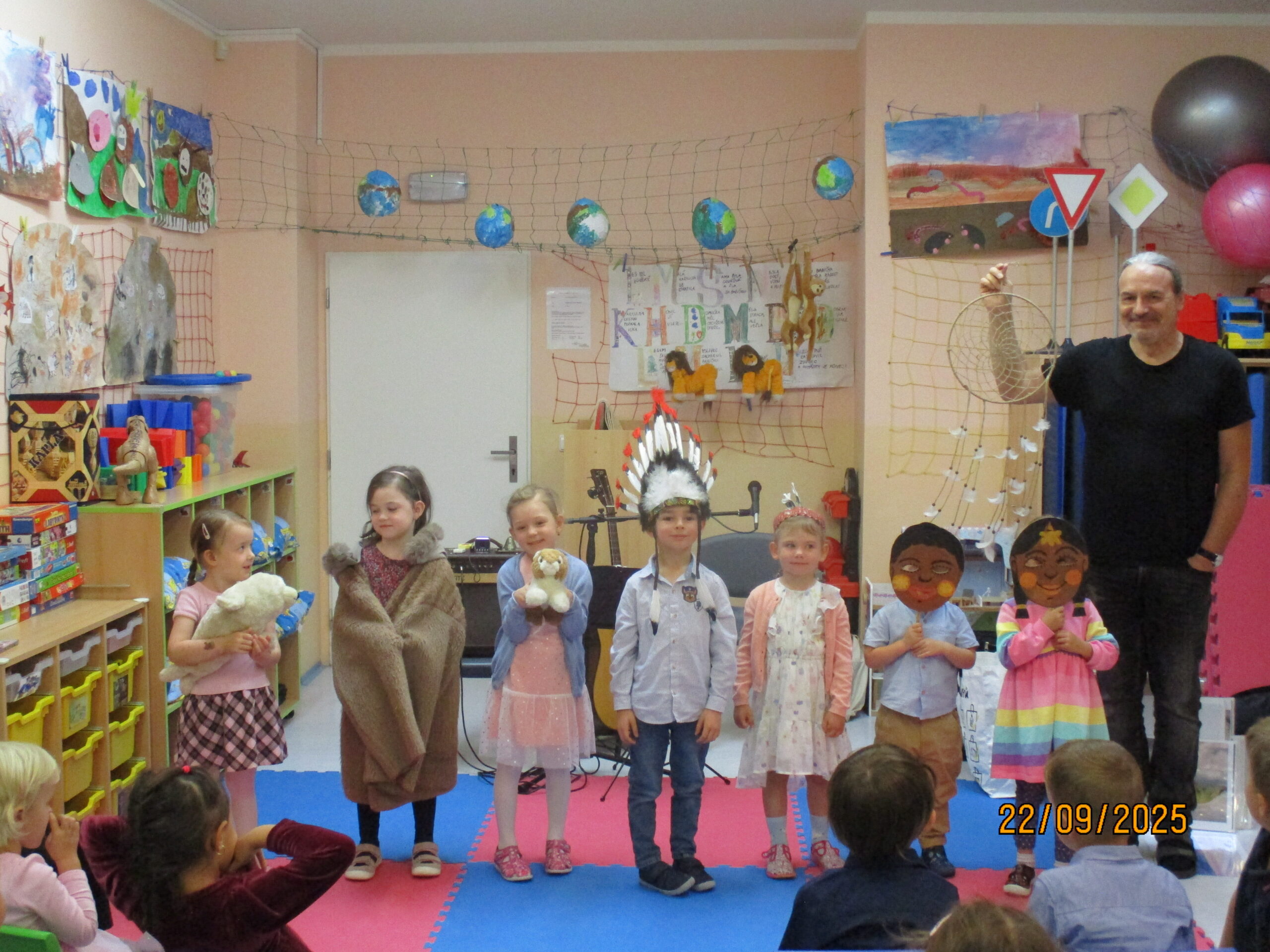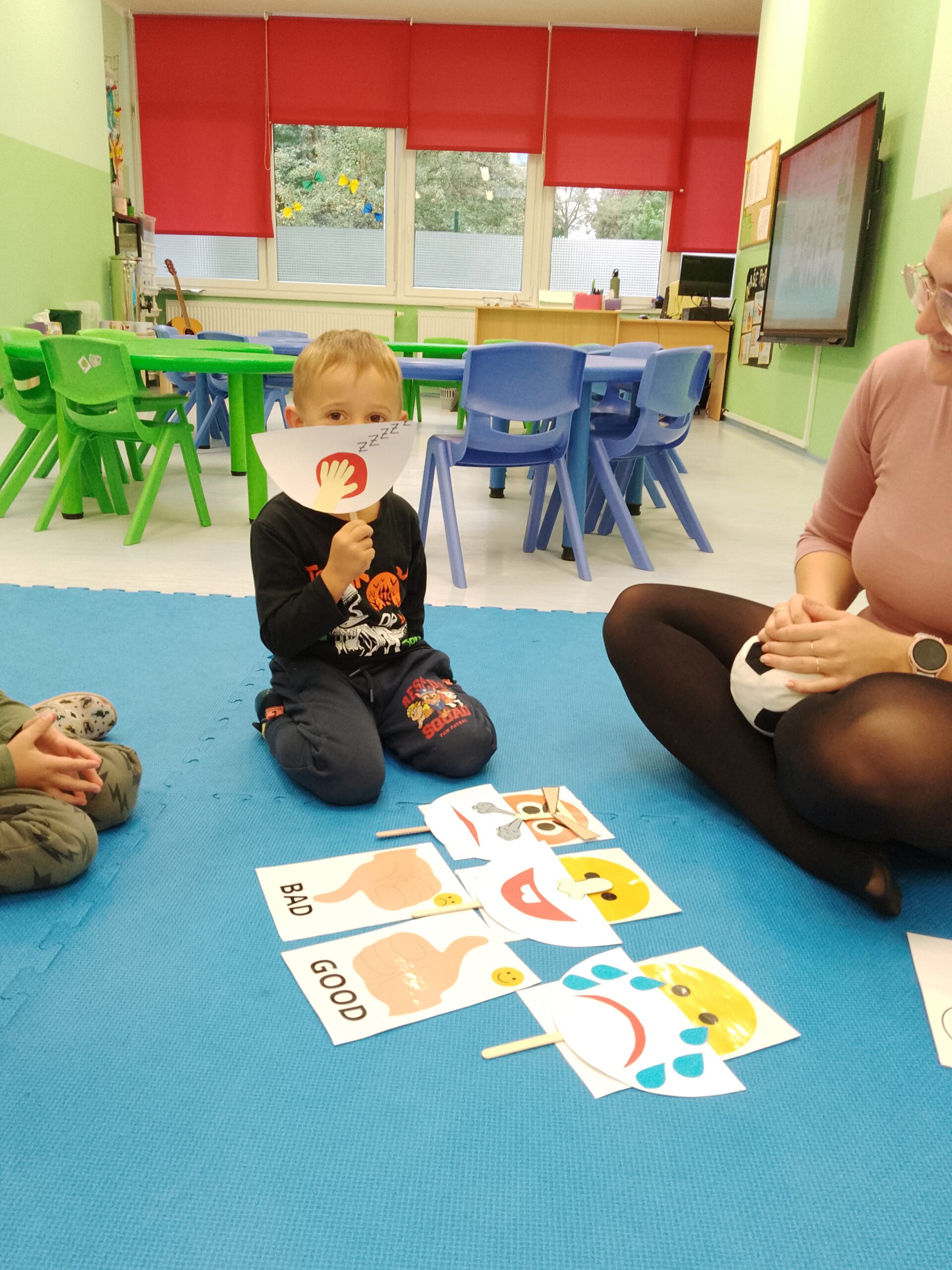 This week, the Froggies focused on emotions and feelings. Throughout the week, we sang the popular song „If You’re Happy “ (https://www.youtube.com/watch?v=l4WNrvVjiTw&list=RDl4WNrvVjiTw&start_radio=1). They practiced answering the question “How are you?” using the sentence structure “I’m _,” while using emotion masks to express how they were feeling. That was fun!