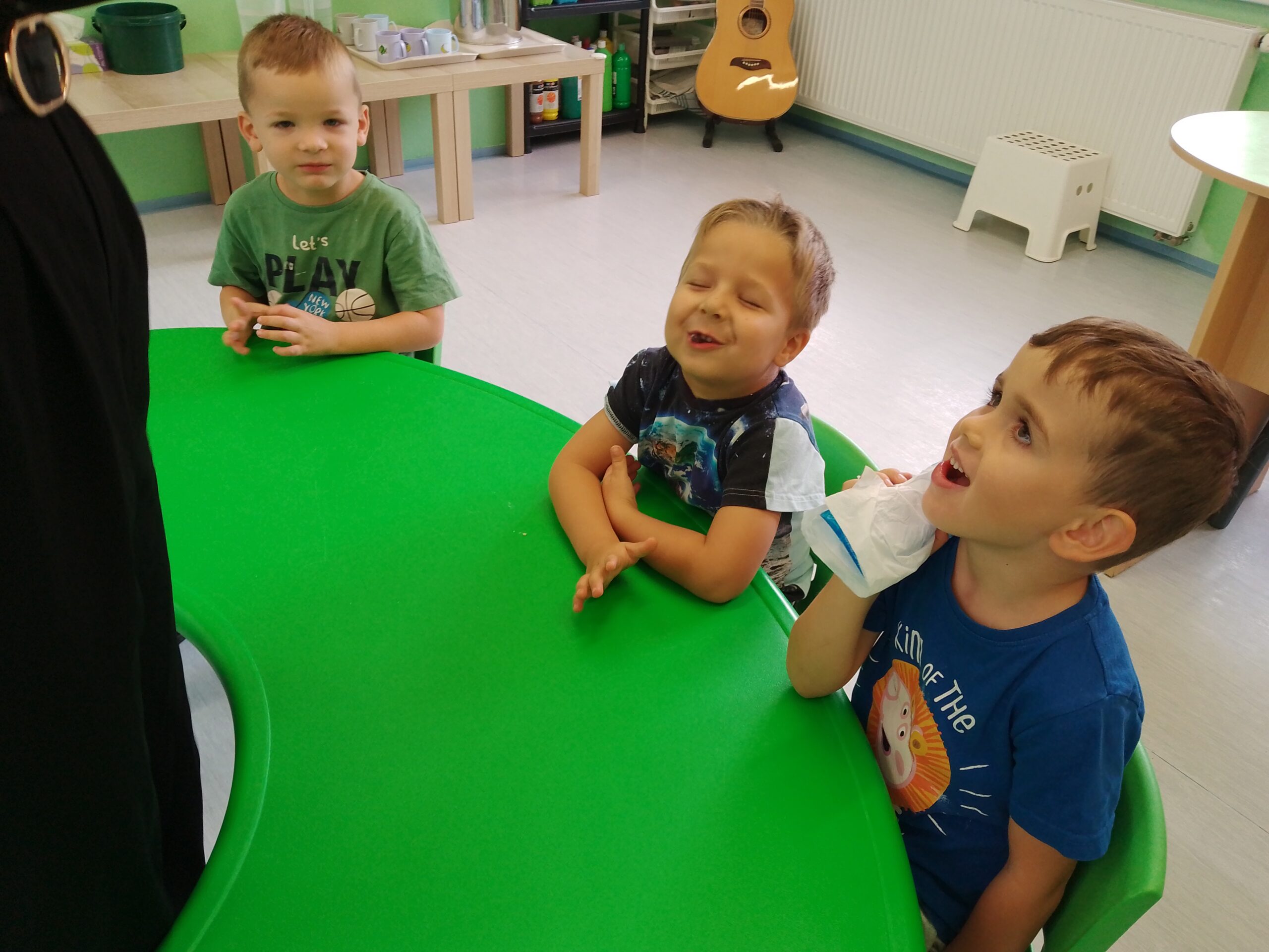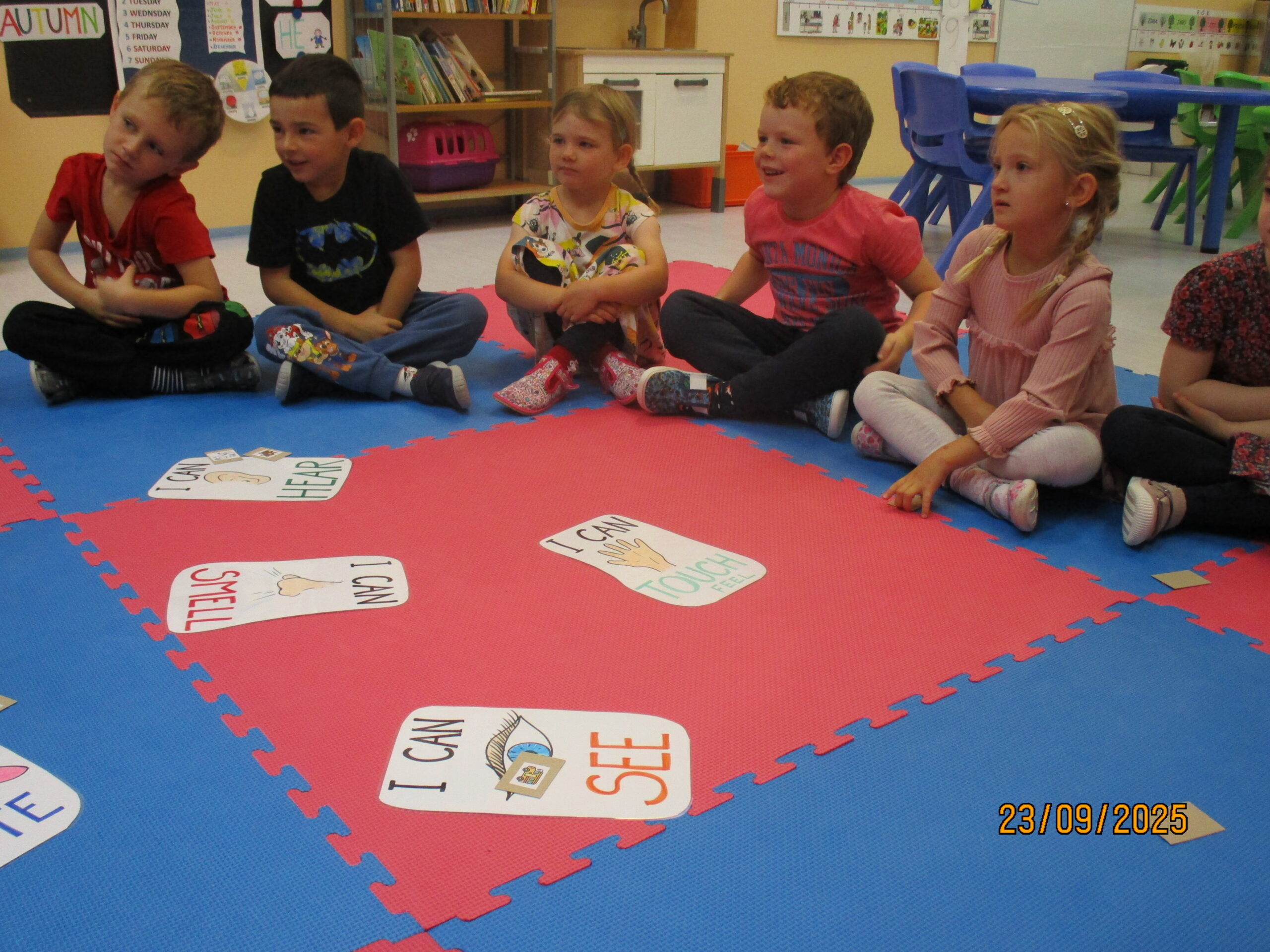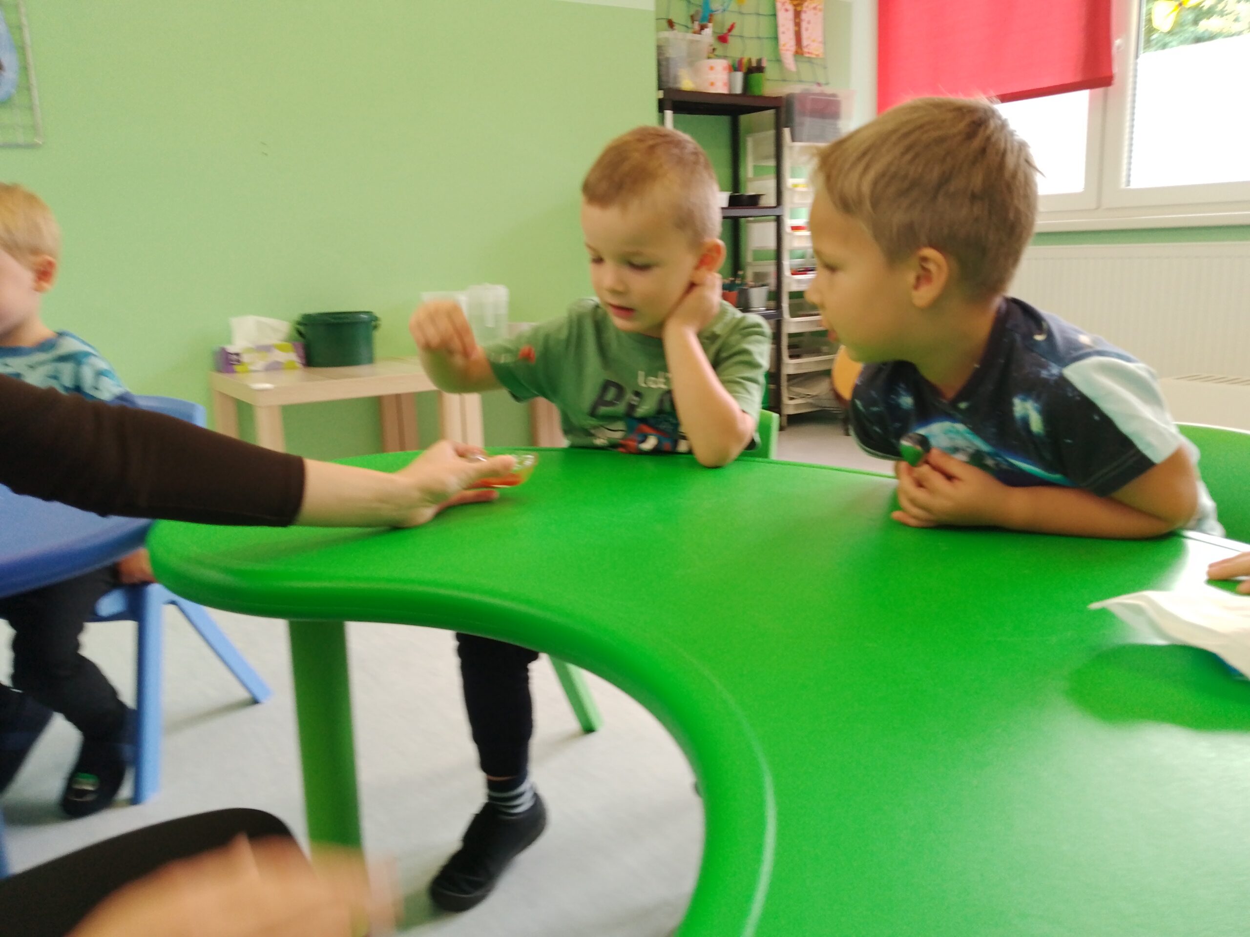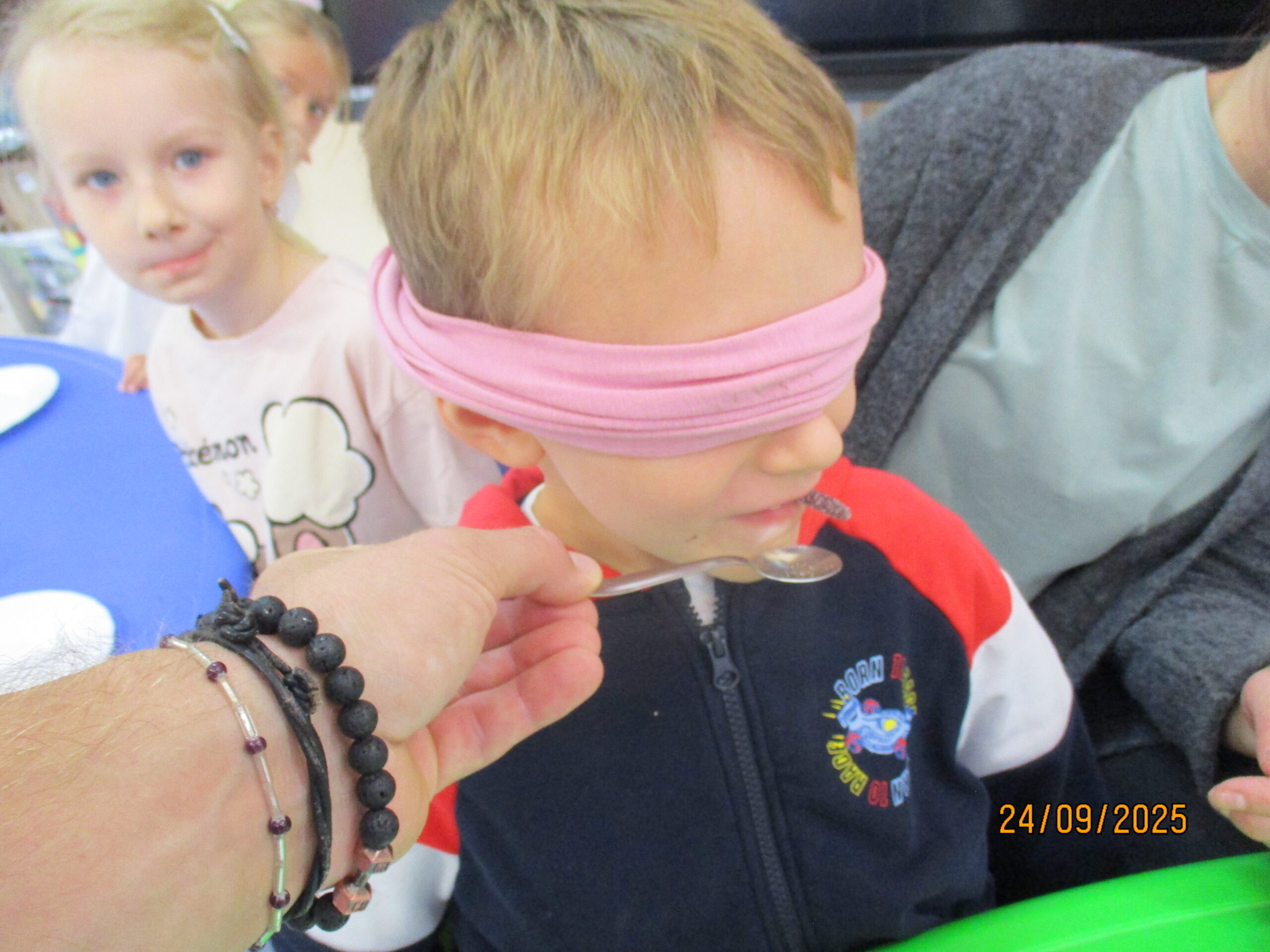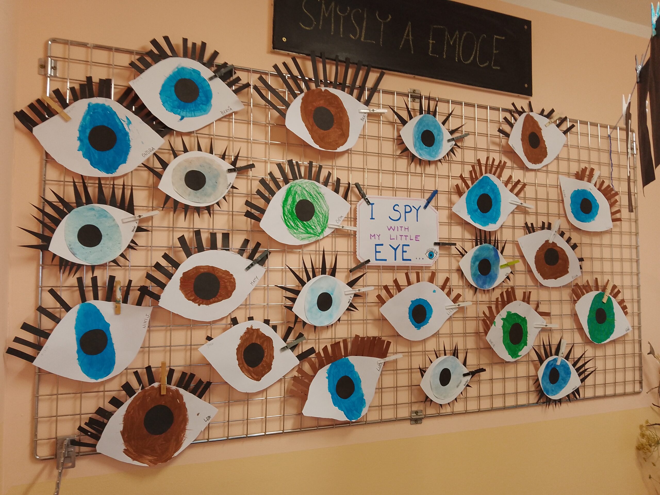 Smyslů máme 5 a všechny bezpečně známe. Dva ze smyslů jsme i parádně procvičili. Zrak – kdy jsme si zahráli kimovu hru na schovávání předmětů a chuť – kdy jsme si udělali ochutnávací den. Chuť byla kyselá, sladká, slaná, ale také hořká. Byla to velká zábava. V týdnu jsme si také pověděli, že nám začíná PODZIM. Pomocí nůžek, lepidla a barev jsme si vyrobili obří oči, která zdobí školku. V dalším týdnu si budeme povídat hlavně o čichu, hmatu a sluchu.